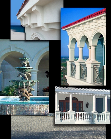 Cast stone has been used extensively for true authenticity. Arches, balustrade, Ashlar Veneer, niches and solid cast columns have been custom designed and fabricated for exclusive use in The Palms.